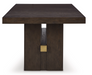Mesa de comedor extensible de la colección “Burkhaus”, con estilo moderno y diseño elegante. Está fabricada en madera maciza, chapa de roble y madera contrachapada, con un acabado en tono roble marrón oscuro que le da un aspecto cálido y sofisticado. Su tablero rectangular tiene borde grueso y descansa sobre una base de doble pedestal, lo que aporta estabilidad y un aire contemporáneo. Incluye una hoja central desmontable para extender el tamaño de la mesa, permitiendo acomodar hasta 8 personas — ideal para comidas familiares o reuniones. Su diseño limpio y atemporal la hace perfecta para comedores de estilo moderno o minimalista.