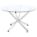 Lo moderno se une a lo atrevido en esta mesa de comedor de uso diario. El tablero redondo de la mesa está construido de vidrio para darle un toque contemporáneo. Las patas se entrecruzan en un patrón elegante que imparte estilo y durabilidad. Considere sillas con un estilo cromado brillante (disponibles por separado) para completar este juego. La mesa queda genial en el comedor con muebles elegantes y una decoración moderna.