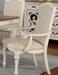 Los hermosos detalles de incrustaciones de madera crean una gran declaración con mucha elegancia. Las sillas tapizadas en tela brindan un sorprendente contraste con el tono y acabado rústicos para una apariencia tan acogedora como elegante.