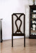 Estas sillas espresso lucen un intrincado diseño de respaldo y cómodas sillas acolchadas tapizadas en tela gris duradera y contrastante. Este conjunto de estilo transitorio funcionará igual de bien en un comedor formal como en una cocina abierta y aireada.