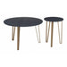 • La superficie es de MDF laminado resistente con acabado en madera teñida negra, y patas de acero con recubrimiento en polvo color dorado.