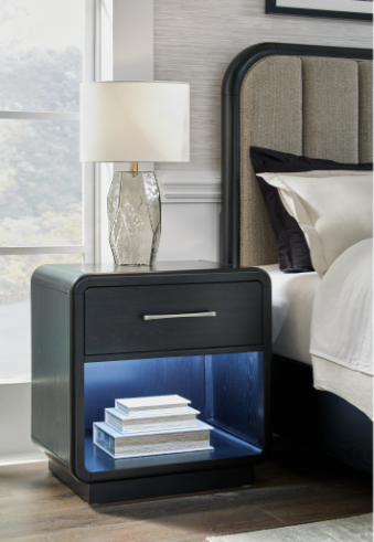 Es una mesita de noche de estilo contemporáneo — perteneciente a la colección “Rowanbeck”. ashley.pr+2My WordPress+2 Está construida con madera...