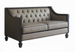 Una combinación entre sencillez y exquisitez; este juego de sofás House Beatrice ofrece un enfoque glamuroso. Estructura sólida bellamente tapizada con piel sintética. Con respaldo capitoné con botones y adornos con forma de clavo, las piezas hechas a mano realzan la belleza del detallado trabajo en madera y la artesanía. Magnífica en su atención a los detalles, cada centímetro es una declaración de elegancia y estilo excepcionales.