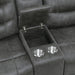 Incluye un mueble central con portavasos y compartimiento — práctico para guardar controles, revistas u objetos pequeños.