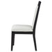 Un estilo dinámico realza la atmósfera de tu comedor con una silla auxiliar que se convierte en el punto focal. Tus comedores modernos o de transición se transforman con vibrantes contrastes de color y acabados en un juego de sillas que ofrece un estilo impecable y un toque minimalista. Su construcción en madera dura asiática y productos de madera con acabado negro le da un aspecto con bordes, con tapizado de tela marfil suave a ambos lados del respaldo. Su silueta lateral ligeramente angulada proporciona comodidad y realza la silueta. Estas sillas lucen un emblema geométrico con ranuras lineales y bordes dentados que definen una línea definida.
