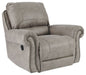 Fusionando a la perfección elementos clásicos con tendencias modernas, este sillón reclinable te invita a llevar a casa lo mejor de entonces y ahora. Envuelta en una fabulosa tapicería gris acero con una suntuosa sensación similar a la gamuza, esta silla reclinable sencilla y elegante está vestida para impresionar con un estilo actualizado de brazo giratorio y toques personalizados que incluyen adornos con clavos y costuras en los paneles de las ventanas.